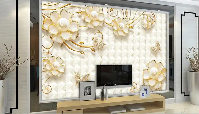 13. Desain Mewah Emas 3d Foto Wallpaper Gulungan Bunga Perhiasan 3d