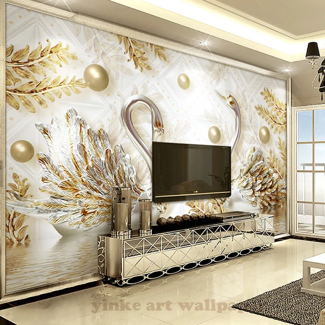 12. Klasik Mewah Platinum Timbul Swan 3d Wallpaper Mural Ramah