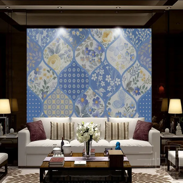 16. Disesuaikan 3d Wallpaper Foto 3d Dinding Mural Wallpaper Biru Pola