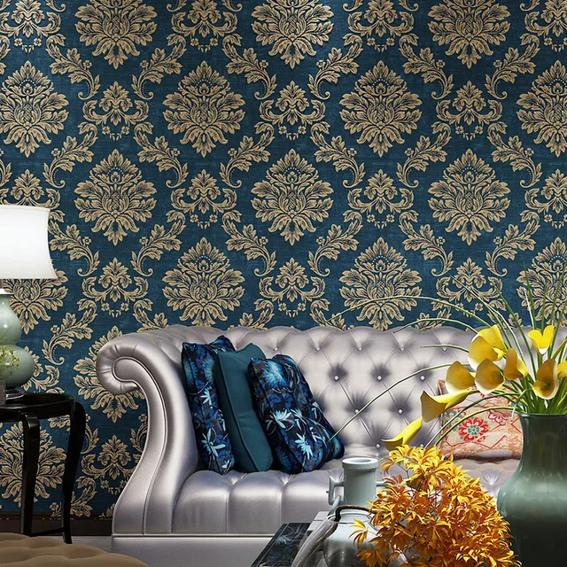 29. Melontar Beibehang Eropa Retro Damaskus Emas Non Woven Wallpaper