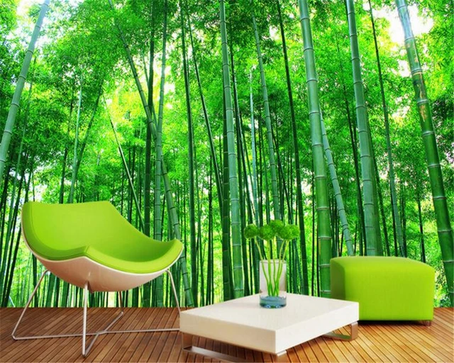 23. Foto Wallpaper 3d Bambu Hijau Alam Lanskap Lukisan Dinding Wallpaper