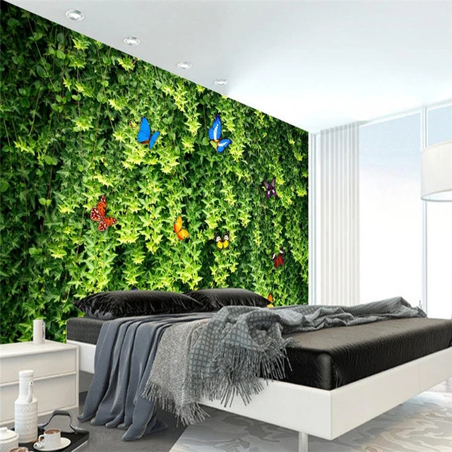 8. Beibehang Kustom 3d Kertas Dinding Segar Hijau Daun Hijau Rotan