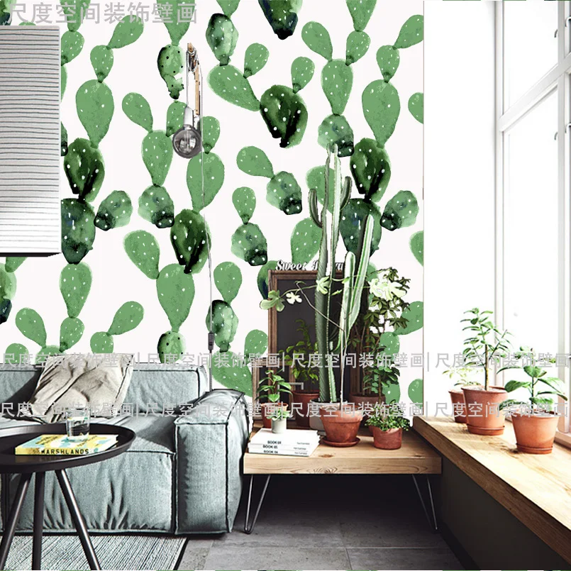 12. Tuya Art Foto Wallpaper 3d Pola Kaktus Hijau Mural Wallpaper Untuk