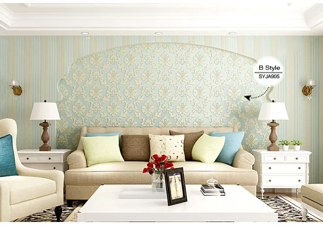 3. Hijau Biru Garis Wallpaper 3d Sederhana Yang Modern Ruang Tamu Kamar