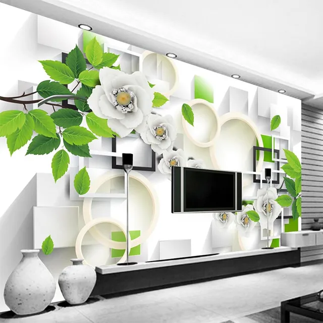 10. 3d Wallpaper Fresh Flowers Green Leaves Photo Wall Murals Wallpaper