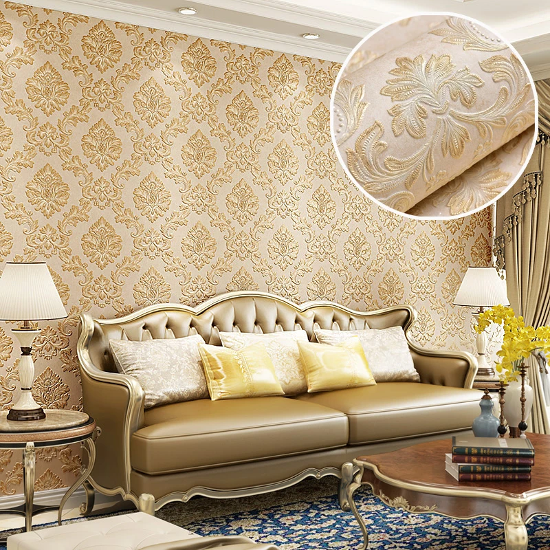 | Luxury Damask Wallpaper Floral Carved Embossed Textured Wallpaper Sumber: www.aliexpress.com |