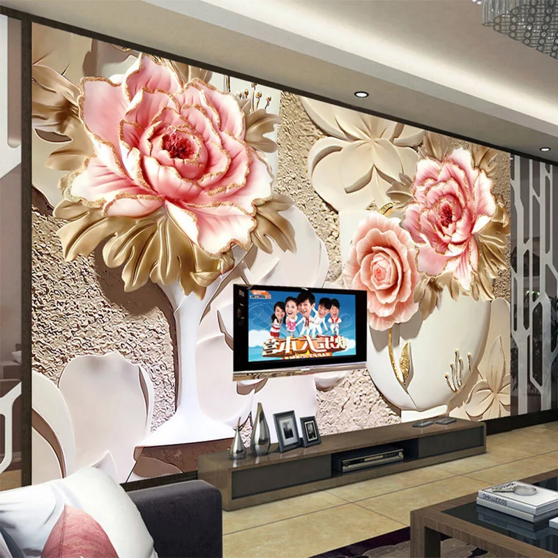 3. Kustom Ukuran 3d Stereo Relief Bunga Besar Lukisan Dinding Wallpaper