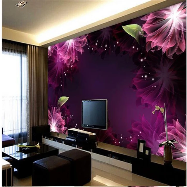 21. Beibehang Wallpaper Hd Indah Ungu Bunga Latar Belakang Mural Tv