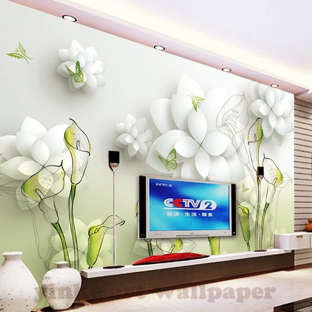 3. 3d Wallpaper Indah Putih Bunga Putih Foto Dinding Dekorasi Lukisan