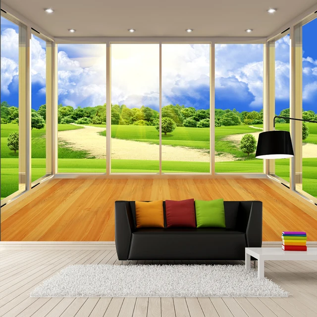 19. Kustom 3d Mural Wallpaper Stereoscopic Balkon Jendela Negara Padang