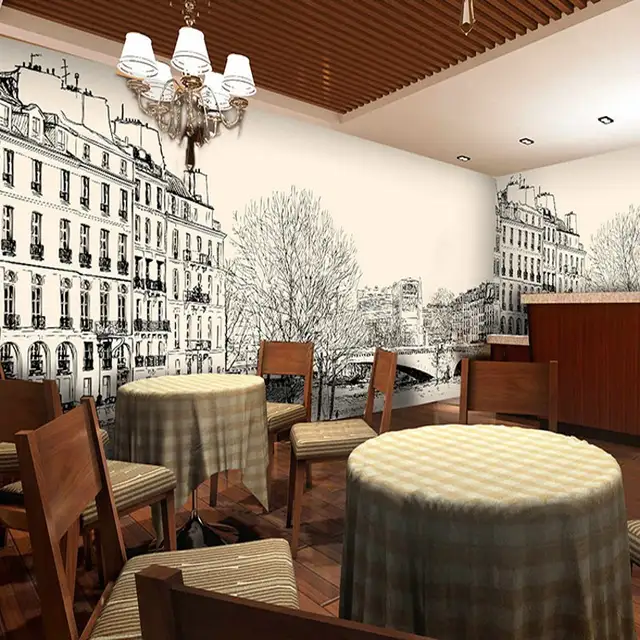 25. Kustom Eropa Peri Tale Town Jalanan Mural Wallpaper Ruang Makan Cafe