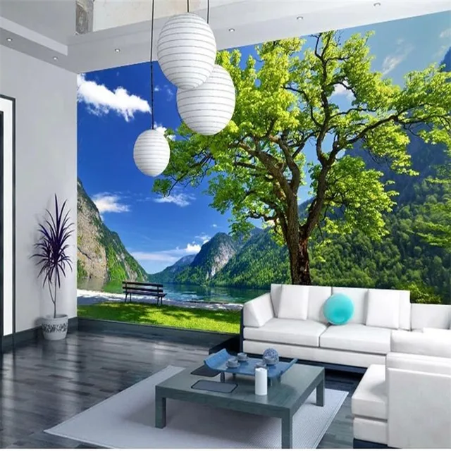 | Custom 3d Photo Wall Paper Scenic Landscape Tree Living Room Dining Sumber: www.aliexpress.com |