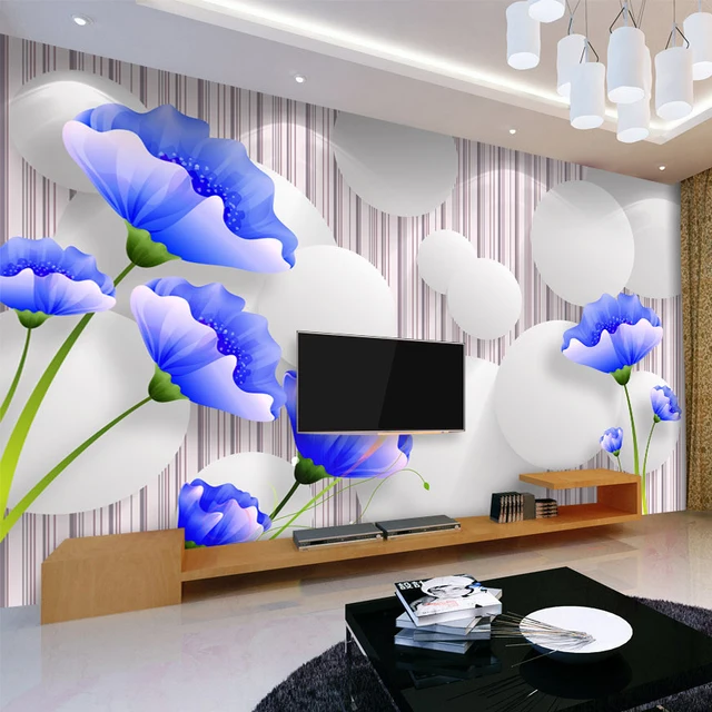 | 3d Kamar Wallpaper Mural Kustom Minimalis Modern Abstrak Biru Bunga Sumber: id.aliexpress.com |
