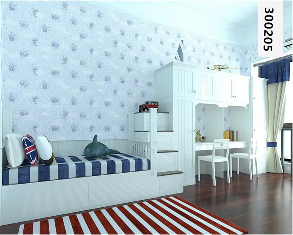 Mediterania Kartun Kayu Bergaris Anak Anak Kamar Wallpaper Untuk Sumber: id.aliexpress.com |